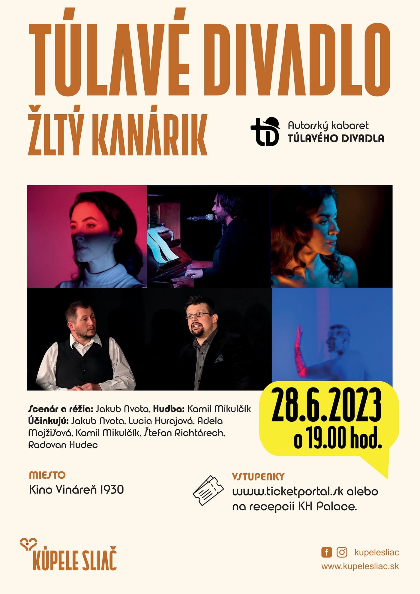 Kúpele Sliač a.s. pozývajú v rámci Sliačskeho kultúrneho leta na Autorský kabaret TÚLAVÉHO DIVADLA ŽLTÝ KANÁRIK